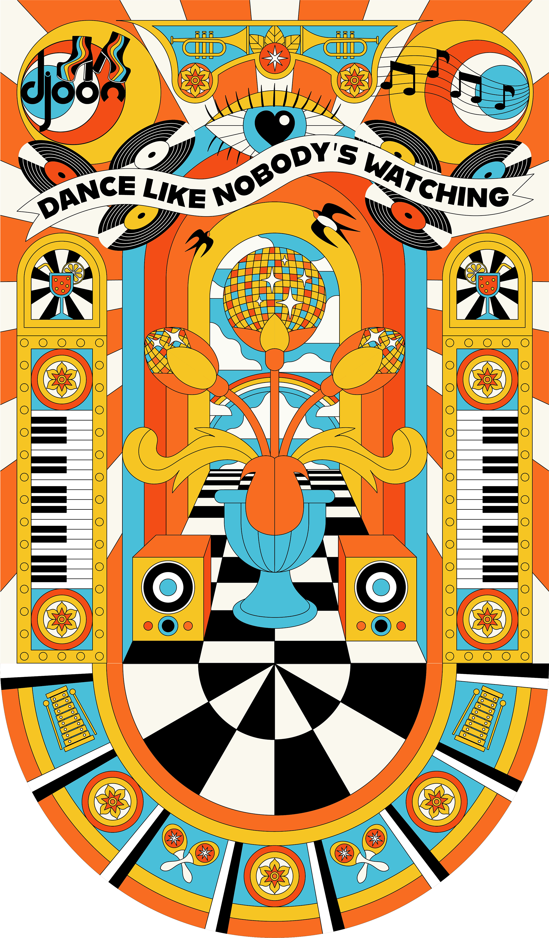 Wall and floor art design for Djoon Club, Paris